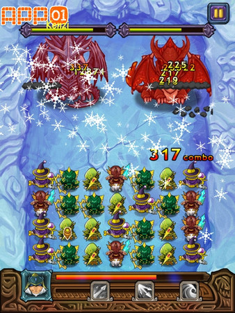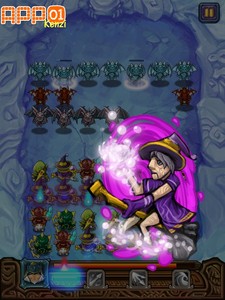 如果同時排列的有五隻或以上相同兵種,則會出現威力強大的聯合技,技能攻擊方式也會依照兵種而有所不同哦! 雖然下圖這巫師的模樣有點醜...但攻擊可是相當有威力呢!