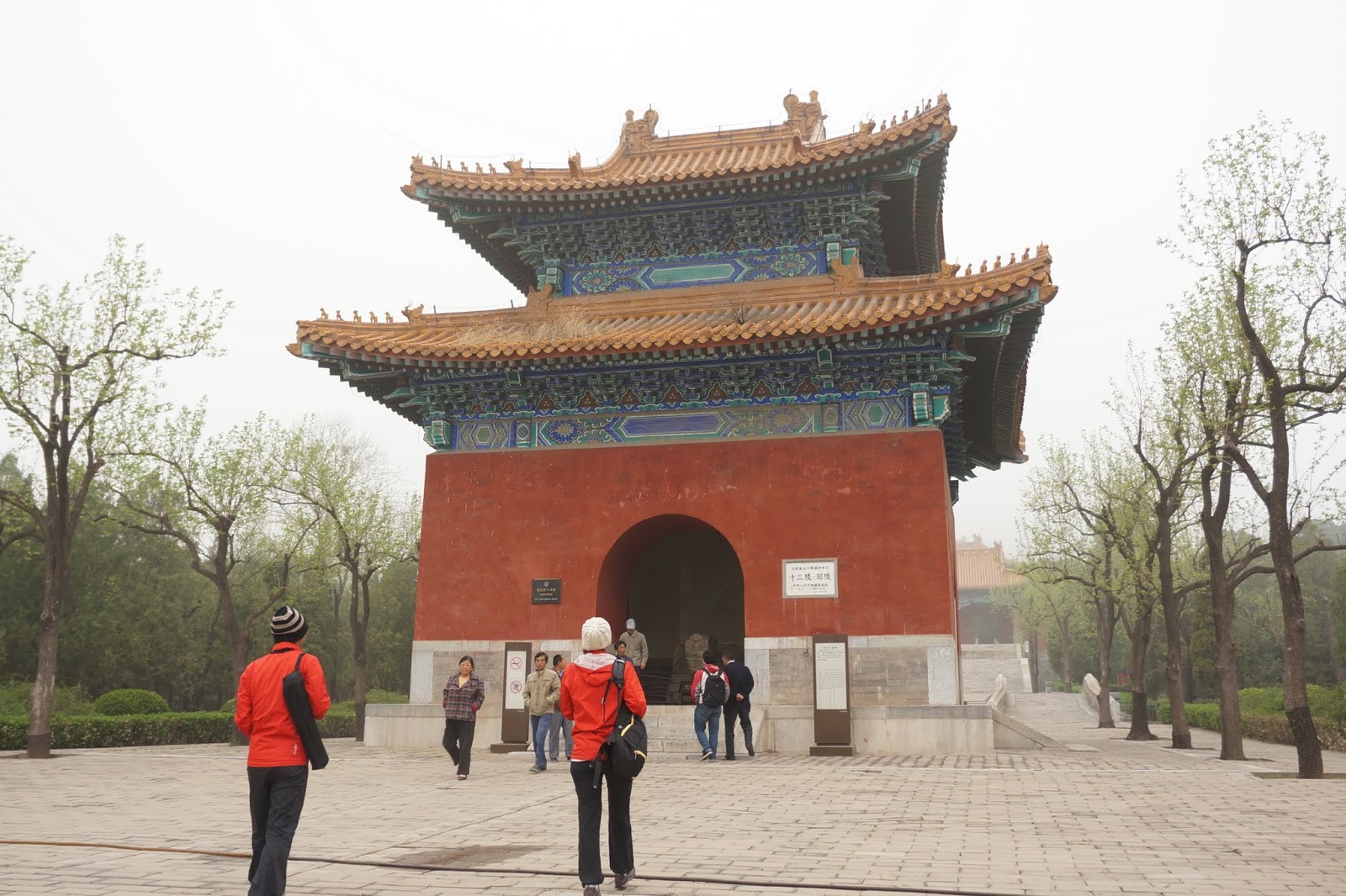 進入十三陵,直接就讓我想到三國無雙的遊戲場景,有種很特別的親切感,比起長城十三陵的人潮就稀疏許多,來的幾乎都以旅行團為主,碰到兩團,很有趣是整個旅遊團快步行走就像在行軍一樣,導遊的導覽就像機關槍一樣快速掃過,讓我不禁好奇,這就是大陸人喜歡的旅遊方式嗎?雖然如此但有人解說還是比自己亂看來得有趣,所以拉長耳朵也要聽人家怎麼細數十三陵,最讓我印象深刻的一段是,皇帝墓上的土堆竟然是用足以供給北京城食用好幾年的稻米堆積而成的,光聽到就覺得很誇張,但也足以見識到皇墓的奢華!回程詐騙哥把我們帶到一處很偏遠的地鐵站,車外正下著雨跟我們的心情很像,心不甘情不願的付完剩餘的錢就搭著地鐵回旅館了。