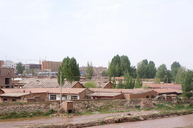 好不容易接近到一個叫做黃羊的地方路,面才又緩轉些。雖說是個鎮,但所經之處房子不是很多,有些說是房子但更像是廢墟,路邊盡是沙子、土地,整個就像電影中美國牛仔站在西部大街的場景一樣。在大陸,國道通常只會經過城市的邊緣,大西北這邊相對發展沒有東部熱絡,若想要找食宿就必須往更市中心走才行。聽了幾位路上大叔的指示,上了一座翻越鐵路的橋之後,進入眼簾的新市鎮宇我們近來所看到的真是天壤之別!