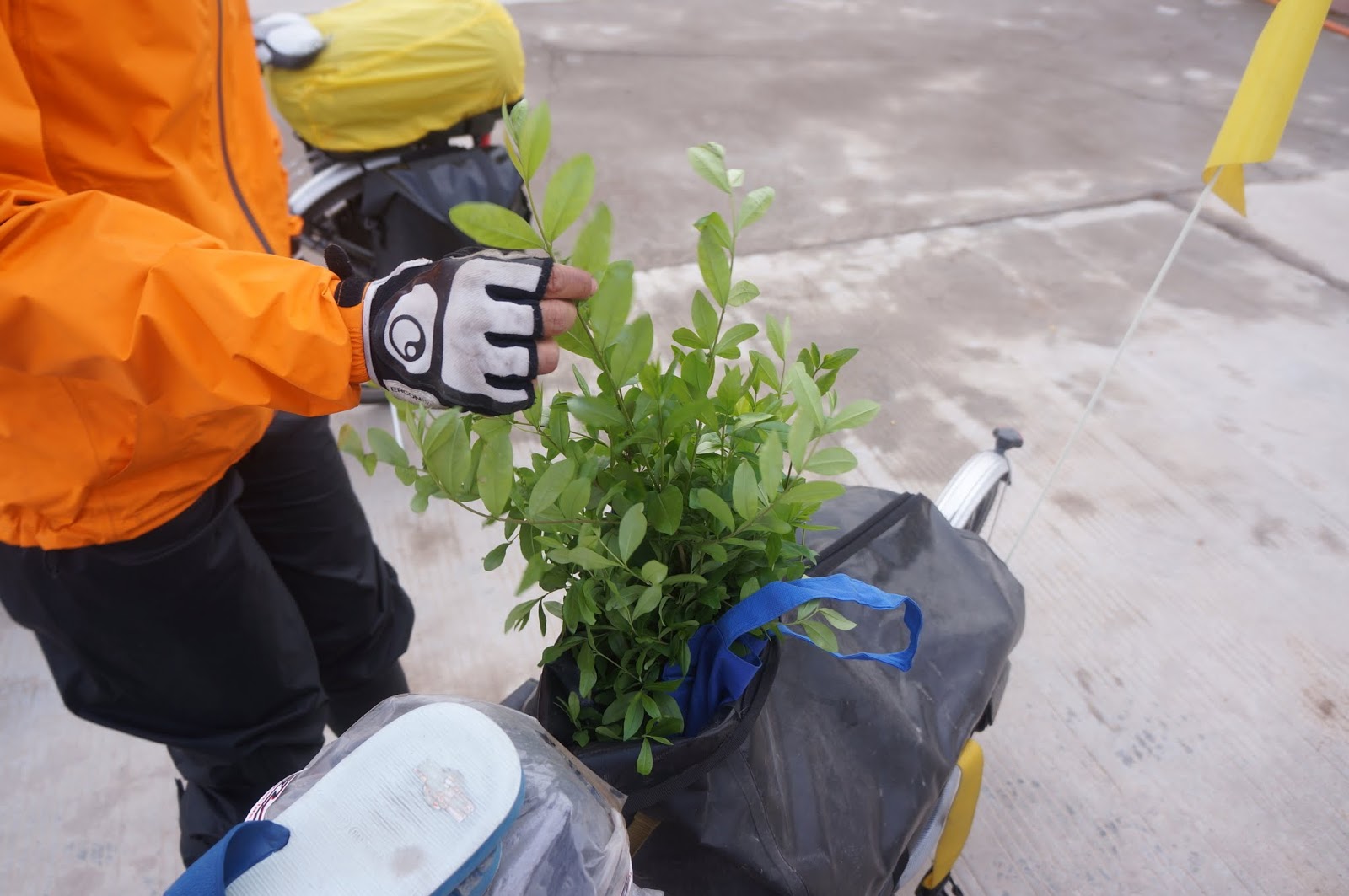 對住台灣的我來說這已經有冬天感覺的溫度,對家鄉在祁連山上的老闆來說,這天氣只需要穿著一件薄薄的襯衫足以,真是讓人佩服佩服!老闆是個很木訥的人,靜靜地聽完我們的來意,就點個頭示意要帶我們到他的苗圃園去看樹苗,請人幫我們準備了25株的小葉女貞並免費贈送給我們,這樣寒冷的天氣更顯得人心的暖。
