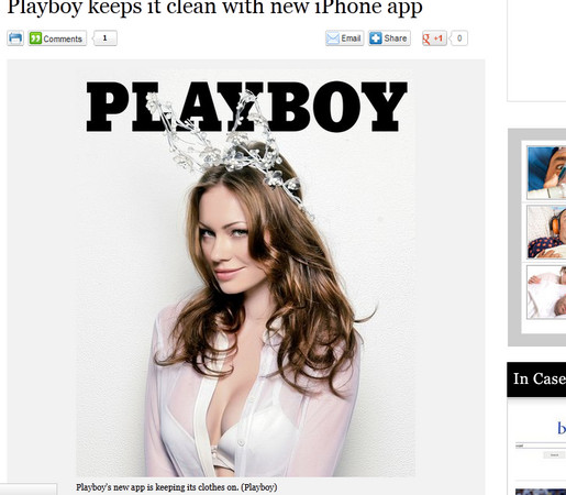 向來以性感著稱的《花花公子》(Playboy)雜誌,好不容易推出每月售價1.99美元的iPhone app版本,想不到居然一件都沒脫!讓許多粉絲迷們大失所望。《花花公子》的公司發言人則表示,這是為了尊重蘋果公司的app政策,而且「沒脫,才更能引人遐想。」