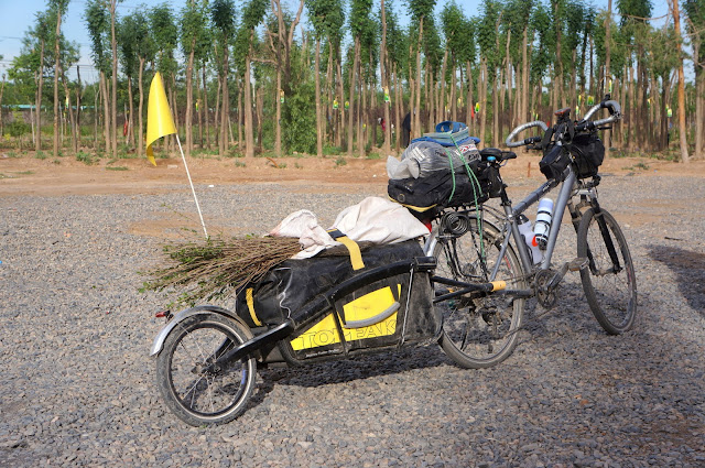原本老闆娘說要用成本價給我們,帶我們晃了一圈之後直接送給我們一大捆水蠟木,讓我們一路種到塔城都不用再傷腦筋補給問題了。但附帶給了我們一疊名片要我們順便發,老闆娘不但熱情也很有生意頭腦,這忙我們當然是幫定了!