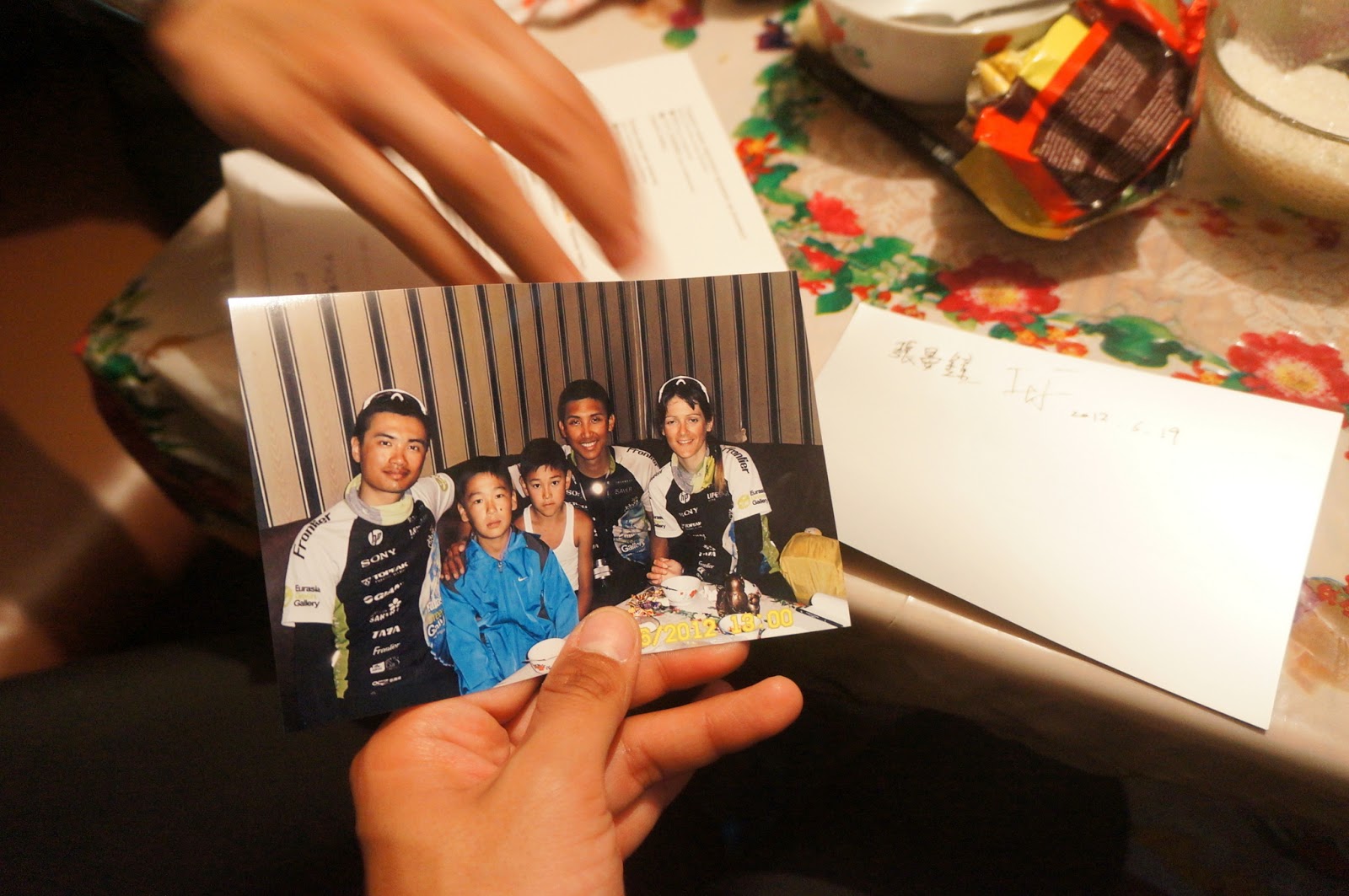 飯還沒吃完又來一堆阿姨大媽說要來與我們合影,而且每個來手上都還帶了"伴手禮"前來,搞得像在進貢一樣。桌上馬上多了兩個紀念品、一大包巧克力和餅乾。事情還沒結束,接著還有結伴而來的,更炫的還有人剛拍完馬上就洗出來要我們在上面簽名!