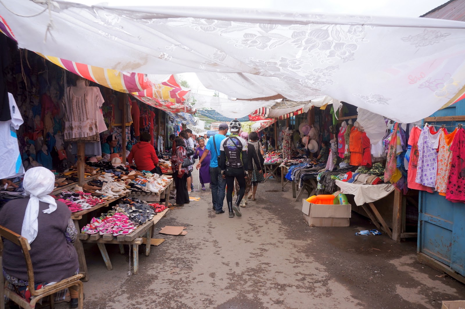這頓飯一吃就來到下午三點半,帶著滿滿的感謝與滿滿的戰利品,道別市場的朋友們。在離開城市錢我們還剩下最後一件事要搞定,邊境通常會出現的"黑市"我們竟然沒有碰到,但哈族大哥帶我們到另一個更棒的地方"中市"。