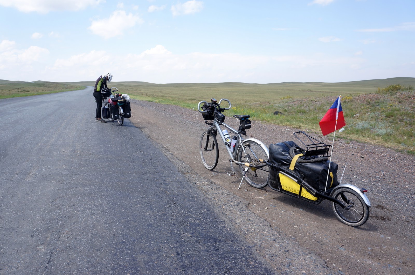 碰到如此棘手狀況該怎麼應對,我出發前已經有擬過一個終極對策,看來還真的要派上用場了。團隊的好處就是很多資源可以相互協助,不光是金費、飲食甚至是單車領組件也不例外。在選擇作為旅行用的單車時,除了要夠輕、夠耐用之外,還必須考量到每台車的零件規格是否有一至性,修護時大家零件可以互換共用。