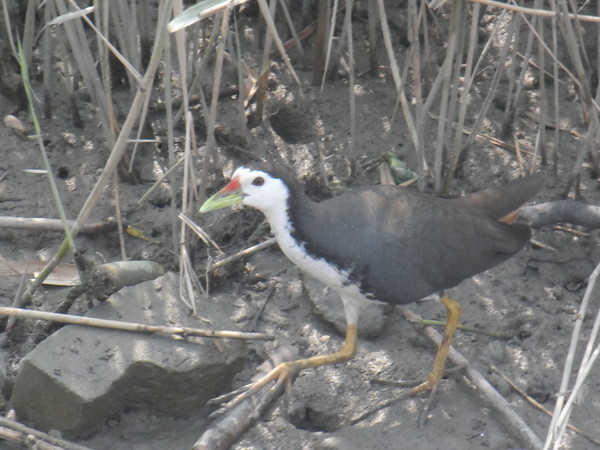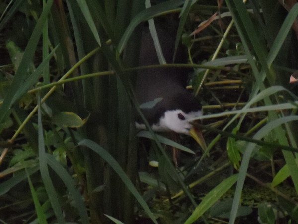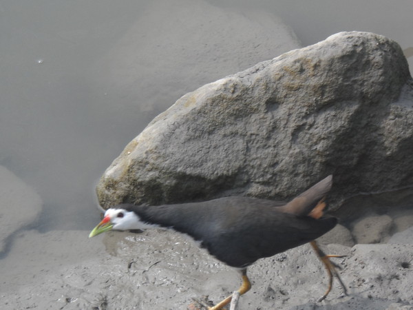 在這些調查中,「苦啊!苦啊!苦啊!」俗稱苦惡鳥的白腹秧雞,雖在植物園、秀峰高中、士林官邸公園、大安森林公園等地方發現,並拍到牠們的照片,但我們在八里左岸、關渡自行車道及長壽公園,均只聞其聲,不見其面,直至102年5月26日我們才在關渡自行車道,發現牠快速跑過的身影;初見她時,她在深密的紅樹林或水筆仔林裹,而且透過細縫只見其黑背、未見其白腹,以為是隻怪鳥,直到5秒後,看到牠快速跑過的身影,才知原本是隻「白腹秧雞」。
