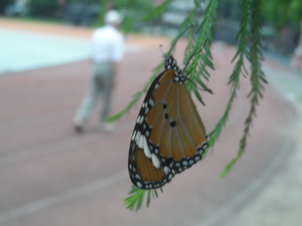 在這些調查中,金龍國小的鳥類,前陣子倒來了1隻小喜鵲,非常可愛,牠喜歡在滑溜梯上玩耍。至於蝶兒,最近則有袖弄蝶、金環蛺蝶、金斑蝶、斐豹蛺蝶、藍紋鋸眼蝶、方環蝶、星黃蝶、小波眼蝶、密紋波眼蝶、眉眼蝶、豆波灰蝶、娜波灰蝶等,非常多采多姿、色彩繽紛的蝶兒,與我們擦身而過;更甚者,一隻金環蛺蝶,竟耐不住中午暑氣,也像人類一樣,跑到騎樓下來納涼,只能說:「天氣真熱,連蝶也怕」。以下是金龍國小的袖弄蝶、金環蛺蝶、金斑蝶、斐豹蛺蝶以及方環蝶,希望大家會喜歡。