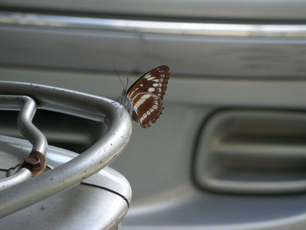 102年8月24日,又來到「銀河洞」,進行「外太空賞鳥賞蝶去」生態之旅;雖然人數不多,但迎接我們的可愛之鳥、美麗之蝶,可不少;除前一次所看到的台灣紫嘯鶇(之前是成鳥、這一次是幼鳥)、琉璃翠鳳蝶、大鳳蝶、花鳳蝶、方環蝶、藍紋鋸眼蝶、幻蛺蝶、異紋紫斑蝶、網絲蛺蝶等,依然在溪邊、花草間,快樂地忙碌著外,鐵色絨弄蝶、台灣瑟弄蝶、青眼蛺蝶、白圈帶蛺蝶等,更在此獻出美麗多彩的身姿。另外,此處,尚有清澈無比的天然之水,供大家提神醒腦,也有帶有詩意的山景供您欣賞,更有「道」,等著您來參透呢!