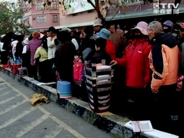 ▲蛋捲卡位戰「算人頭」,嬰兒「抱來排」。