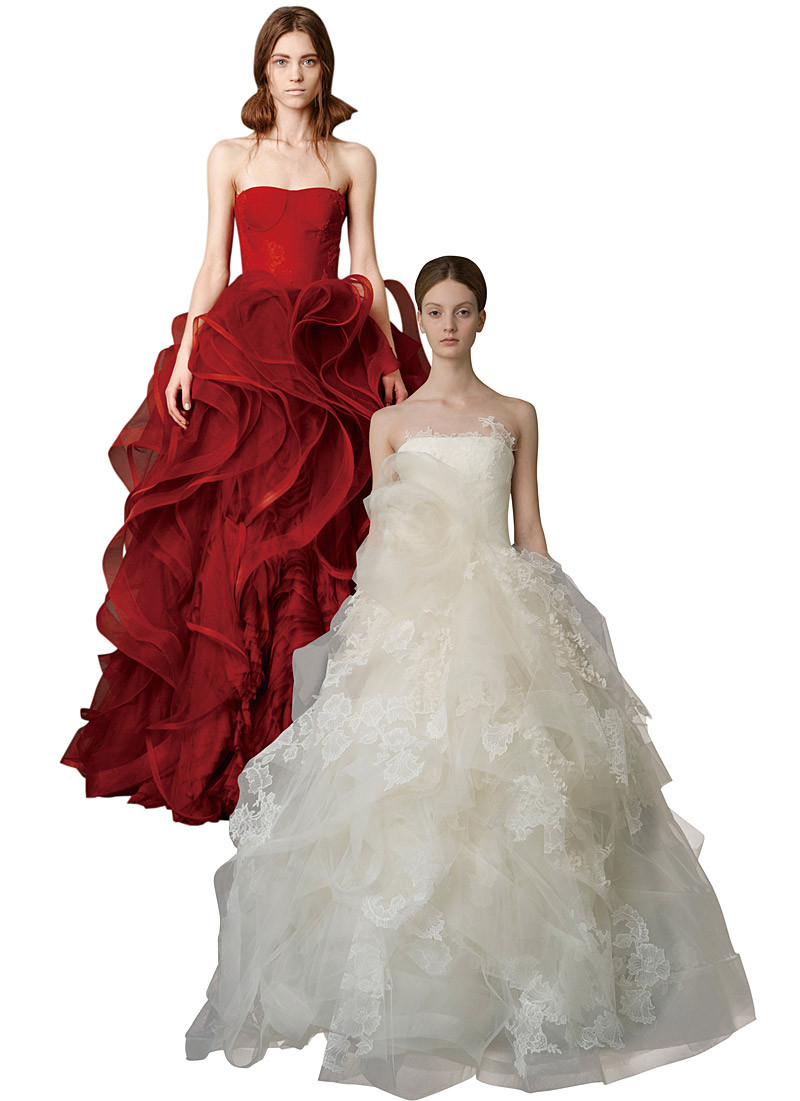 VERA WANG高級訂製婚紗以作工精緻、細節柔美和具現代感著稱,混合夢幻蕾絲與手工車縫珠飾繡花、紗裙,她堅持層層縫製、讓多達十層的紗質裙襬更顯奢華規格。