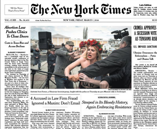 但是,這一切都從上月起徹底改變了。上個月在烏克蘭首都基輔,抗議者將總統亞努科維奇(Viktor F. Yanukovych)趕下台。但在克里米亞擁有眾多觀眾的俄羅斯電視台、以及親俄商人控制的地方媒體,卻把亞努科維奇的下台描述為法西斯政變。
