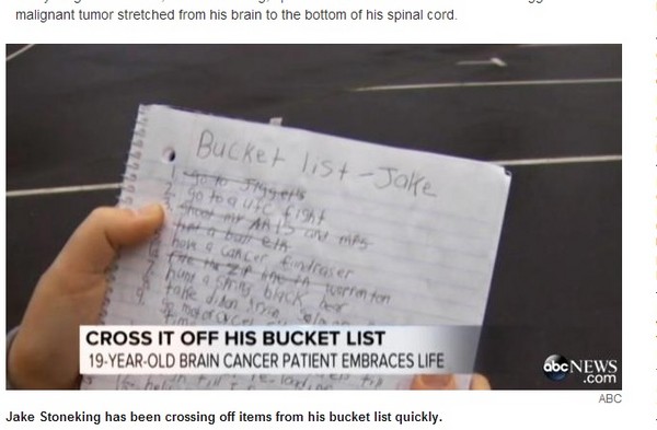 根據《紐約每日新聞》報導,史頓京14歲時被診斷出患有罕見腦癌,雖曾接受幾個月的化療,切除大小如高爾夫的腫瘤,但上個月又再度復發,擴散到脊椎。得知自己只剩幾個月生命後,某天他半夜睡不著覺,決定動筆寫下17個死前最想完成的心願。