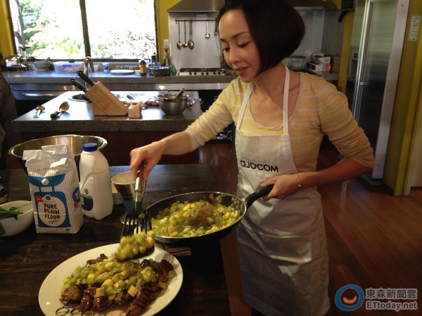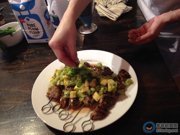 人在紐西蘭的Joanna在完成食譜後甚至還立即採取行動,透過朋友借到了西式廚房,一展廚藝親自示範兩道美享樂養生餐料理,其中,第一道是奇異果中東羊肉串,另一道則是奇異果巧克力煎餅。