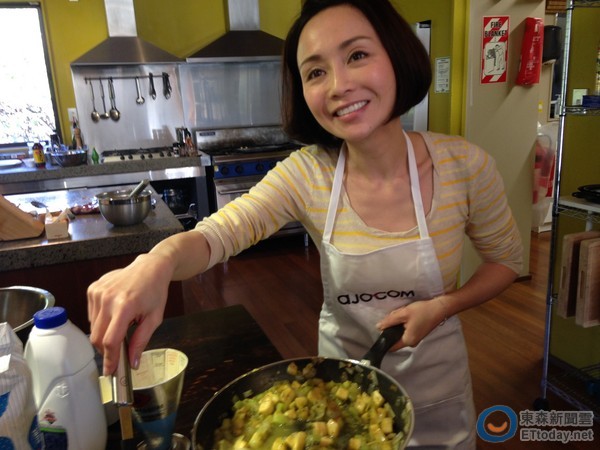 ▲Joanna劉韋彤首度挑戰奇異果料理。(圖/記者陳弘修攝)