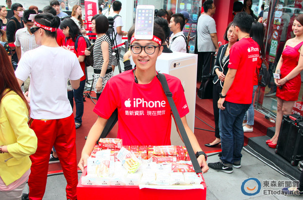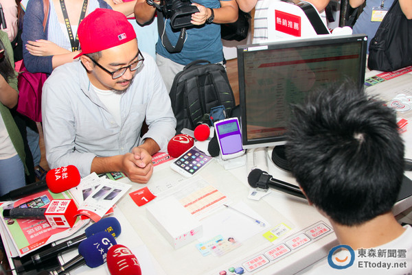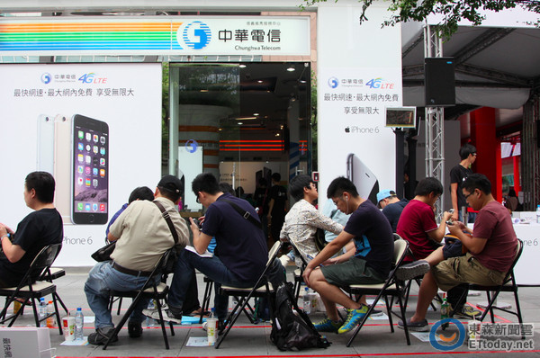 ▲▼中華電威秀門市首賣會現場開放首批預約民眾到場領現貨,還將送出 3 支 iPhone 6、3 支 iPhone 6 Plus 給前 100 名到場取機民眾,結果還沒九點現場來了超過百位民眾到場取貨。(圖/記者洪聖壹攝)