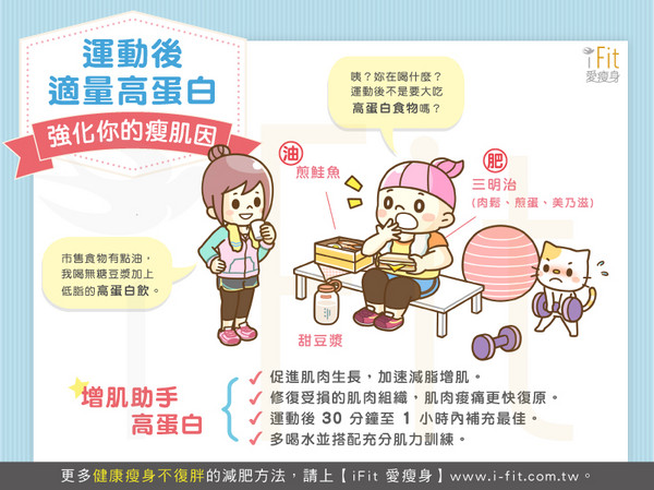親愛的,如果你還抱有這樣的迷思,可就大錯特錯囉~事實上,運動後 2 小時是身體的黃金進食期,這時代謝快,適量補充蛋白質可用來修補增強肌肉,反而更能打造緊實迷人的身材喔!