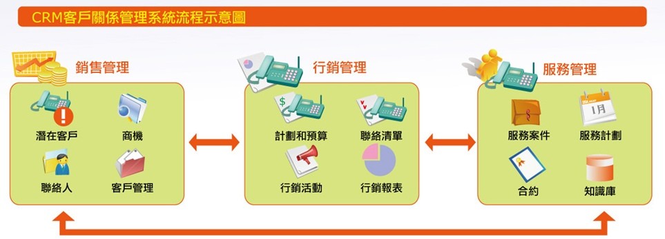 使用中華電信雲端CRM服務,企業無需花大量成本自建CRM系統,只需透過帳號申請,即可以最快及最彈性的方式導入行銷、銷售與服務三大模組,迅速建置客戶資料、商機及訂單管理,進行客戶需求與產品銷售狀況分析,並可透過簡訊、傳真與e-DM等行銷工具及搭配各式追蹤統計圖表,讓企業不只能對歷史的銷售記錄與客戶行為進行分析,同時還能採取及時的行銷活動,隨時掌握企業商機,快速找到決策關鍵點。