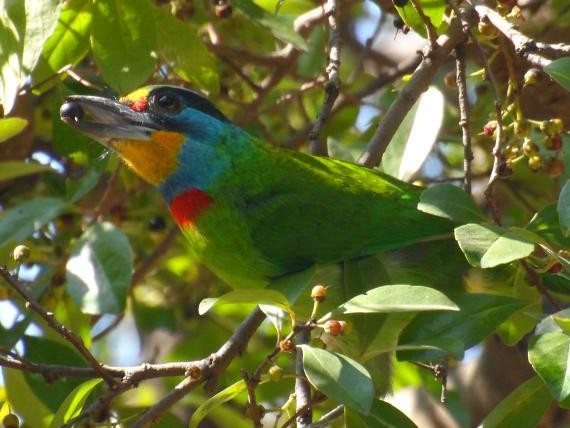 103年12月4日,雖然下探12度,但我們仍來到了「廣興濕地」及「植物園」;在「植物園」,除有領角鴞、小彎嘴及斑文鳥外,尚有「五色鳥在洞口,探頭探腦」以及「肥伯勞」,讓我們心情大開。