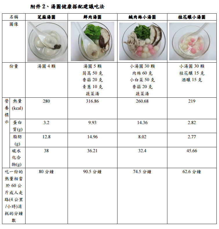 二十四節氣之一的「冬至」即將到來,不少民眾都有吃湯圓的習俗,有年終團聚之意,但其實湯圓熱量相當驚人,4顆包餡湯圓或是54顆無餡紅白小湯圓,有相當於1碗白飯的熱量。國民健康署指出,只要把握3項原則,就可以避免攝取過多熱量。