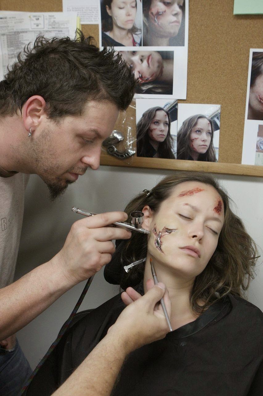 這是女生終結者Cameron,在部分臉部受損的畫面中使用的化妝技術。