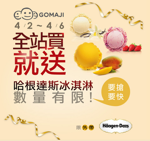 讓連假要出遊或掃墓的民眾可以消消暑氣,團購網GOMAJI於即日起至4月6日止推出「全站買就送哈根達斯冰淇淋」活動,全站不限金額消費任一商品,即可免費獲得哈根達斯冰淇淋。此外,王品集團旗下平價連鎖火鍋店「石二鍋」首次開團購銷售,並主打「買石二鍋,加碼送購物金」。