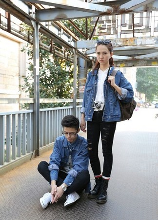 雖然乍看之下一樣,但是兩人的鞋子跟褲子是不一樣的哦,在上身利用同樣的單品搭配,在下身加入別的單品凸顯不同,是不是很高明呢?尤其牛仔外套跟白色T恤,這兩種實搭的款式幾乎是人手一件,若你想挑戰更高難度的變化的話,可以選擇刷色跟長度不同的牛仔外套來做變換唷。