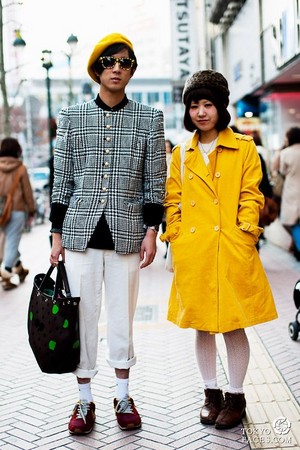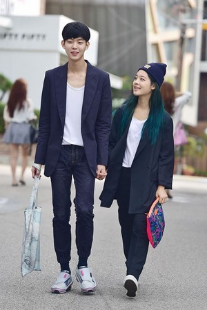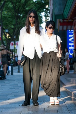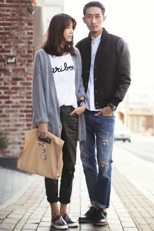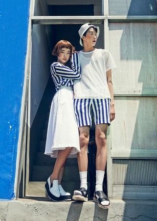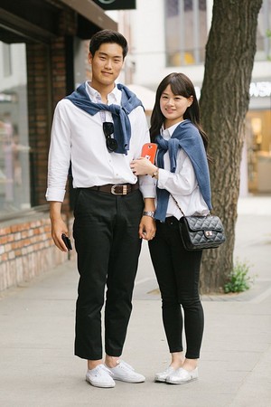 或是這種交叉穿搭法,看起來哪裡不樣,卻又不一樣,兩人都是穿白Tee,但是女生的外套顏色跟男生的褲子顏色是相似的,同理男生的外套顏色跟女生的褲子顏色也是相仿的哦,這時候再換雙不同的鞋子就完成啦。