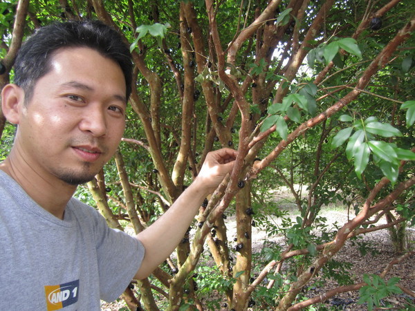 又稱「嘉寶果」的樹葡萄沒有病蟲害,葉啟陽表示,種植起來「很好照顧」,但較麻煩的是會吸引很多鳥過來啄食,所以果園要架設鳥網,但還是偶爾有鳥鑽進來,看到也不理會牠們,「反正吃剩的就是賺的」。樹葡萄目前市價每公斤約150元,葉啟陽看好未來發展,預計把2公頃的檳榔樹改種樹葡萄。