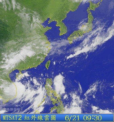 昨天(20日)是偏悶熱的天氣型態,白天高溫也有34度以上,嘉義觀測站甚至有36.3高溫,中央氣象局表示,「今天(21日)天氣與昨天相似,西半部地區白天高溫可以達到34至36度,風力較弱會更悶熱」,也要留意午後雷陣雨;目前在南海的熱帶性低氣壓,有機會發展為今年第一個颱風「鯨魚」。