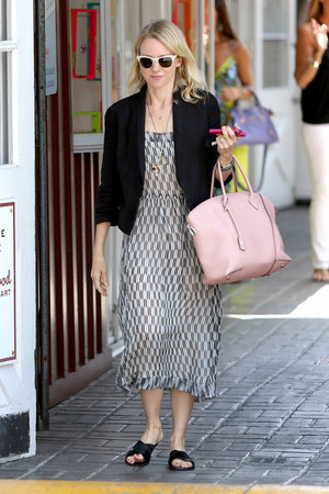 在拍戲之餘,Naomi Watts提著心愛的Louis Vuitton粉嫩LOCKIT包外出輕鬆享受天倫之樂,淡雅粉紅色皮革襯托她的膚色更白皙透亮,讓她散發出女演員之外,身為人母與人妻的幸福光暈。