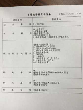 由於大量傷患湧進,醫院在藥材、醫材調度上變得困難,新北市府特別呼籲有藥商執照許可等團體可以捐贈相關醫藥材。