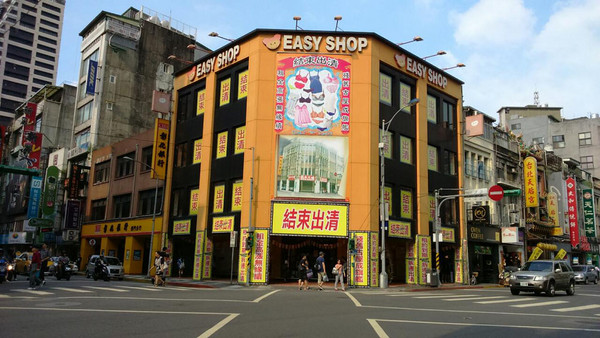 位在西門町成都路與西寧南路口的EASY SHOP成都店,擁有4層樓的亮橘色外觀,總計近300坪大,不僅是該品牌旗下旗艦店,也是醒目的街頭地標,然而該門市於2005年9月承租前,其實已空置達10多年之久,店內甚至還有老樹穿透每個樓板,結構搖搖欲墜,不過業者看好該地段前景商機及其營業量體,決定投入上千萬元重新打造,由內到外大舉翻修,才從危樓變身為時尚面貌,並於2006年1月全新開幕。