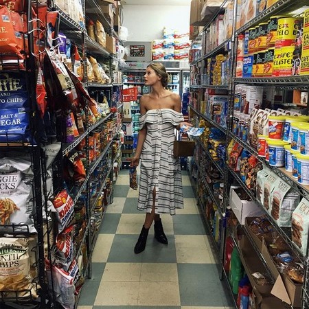 你平常最喜歡在哪裡拍照呢?無論是餐廳裡、海灘邊、或者名勝美景前,都算Instagram上很常見的不敗拍照背景,但今夏似乎有個新趨勢默默崛起了…有沒有發現,好多名模名星們紛紛貼出在雜貨店或超市所拍的生活照呢?