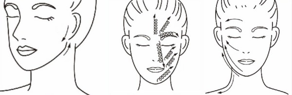 1.舒開技法:使用按摩板A端,順著箭頭方向舒展,左右邊各5次。靠在耳前方往下滑動、從耳下由下往上滑動、鎖骨的上方往外側滑動。