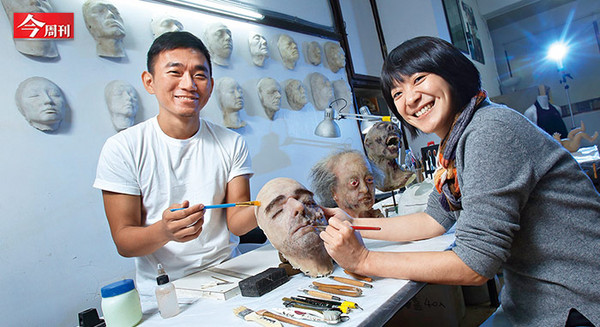 電影《陀地驅魔人》拍攝現場,充斥著「猛鬼」,讓張家輝、郭采潔嚇得膽戰心驚,這些嚇人的妝容出自台灣蕭百宸、劉顯嘉的巧手;他們成立百嘉堂特效化妝工作室時,就務實地相信,特效化妝的一塊矽膠,遠比沒有實現的夢想重要。