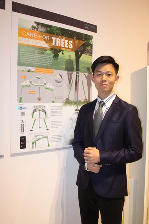 另本次展覽最具潛力的參展作品則是因風災造成樹倒損失慘重為發想的「CARE-FORTREES」,是一項隨著環境改變能夠支撐並且跟使用者有互動的產品。今年大三的創作者簡伯仰表示,作品針對支撐,生物能充電的利用方向去設計,以節能環保的方式去提升效能,減少資源的浪費,同時結合NFC和QRcode科技結合讓使用者可以清楚的了解樹種,也能達到推廣教育的效益,未來甚至可以與國家公園合作,準確的監控樹木的成長與狀況。