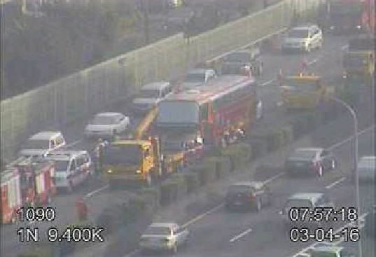 國道1號南下9.2公里、五堵至汐止路段4日上午7時多發生連環車禍,8輛自小客車與遊覽車發生碰撞,其中一輛轎車副駕駛受困車內,目前已搶救脫困。有網友無奈地說,國1基隆到台北「目前1分鐘只能走100公尺。」
