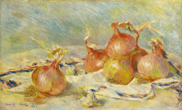 若專注欣賞雷諾瓦在色彩上的處理,可以發現銀灰色是他的偏愛,也是他最為突出的色彩表現,幾乎可以感覺銀灰色在統整他的畫面。有時候銀灰色用的不好容易有髒的感覺,但在雷諾瓦筆下卻是畫中的精靈,因此反而特別令人佩服雷諾瓦對銀灰色的掌控。一襲美麗的衣裙或是項鍊更甚或是靜物上的光線反射,雷諾瓦都可以一筆一筆的讓銀灰色成為靈魂,甜蜜而清晰,沒有裝飾性的用色,豐富了整幅畫的色彩。