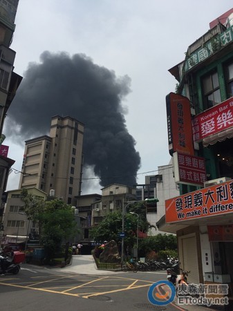 ▲北市自來水園區淨水池蓋板起火,火煙直衝天際,緊急疏散200遊客。(圖/民眾提供)