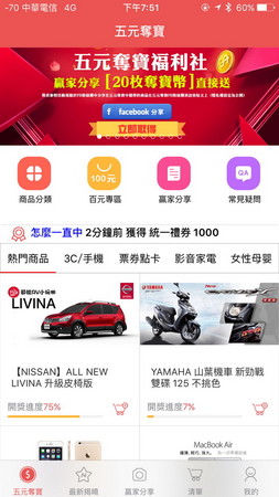 APP名稱:五元奪寶-最新手機商品通通5元搶購