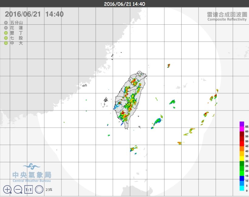 ▲目前高雄、屏東、台東出現大雷雨。(圖/中央氣象局)