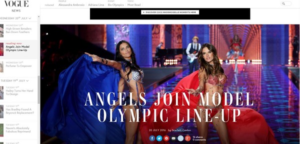 阿德瑞娜和亞歷珊卓都是維多利亞秘密的重量級天使,根據《VOGUE》報導,里約出身的亞歷珊卓興奮表示, 「巴西人對運動非常有熱忱,從骨子裡外都充滿對運動熱愛的血液!」阿德瑞娜也說,巴西能夠舉辦這場世界級的盛宴,真是無比榮幸。