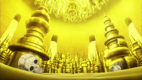 誤闖入連世界政府都無法輕易干預的絕對聖域,草帽一夥人在世上最大的娛樂都市裡,在一片歌舞昇平的歡樂的氛圍中,發現了黃金大帝不為人知的可怕計畫。