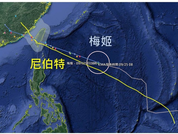 中颱梅姬步步逼近台灣,中央氣象局預計今天晚上11點30分,就會發布海上颱風警報,緊接著發布陸警,預計下周二(27日)從東南部一帶登陸,期間不斷增胖,和7月襲台橫掃17級風的小鋼砲尼伯特,有甚麼不同?天氣風險公司總經理彭啟明解釋,兩者相比,「梅姬胖多了,水氣夠,說比較弱,但暴風圈及強度也只差尼伯特一點點。」