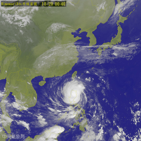 根據氣象局觀測資訊顯示,強颱海馬目前位在台灣正下方,已經登陸菲律賓,以每小時29轉26公里速度持續向西北西前進,近中心最大風速每秒53公尺,瞬間最大陣風達每秒65公尺,7級暴風半徑280公里,從衛星雲圖來看,暴風圈仍又胖又圓。