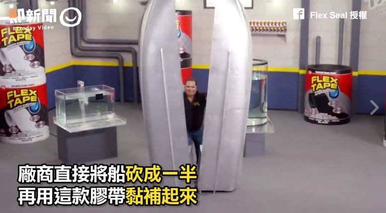 從影片中可以看到,不管是水箱破掉,水管上有裂痕,只要貼上這款強力膠帶,就能將外漏的水通通堵住。除了防水功能之外,它還能負荷超重槓片,不僅耐重還有彈性,最驚人的是它的黏著力超強,能把被砍成一半的船用膠帶黏補起來,而且竟然還能在水上奔馳,真的是太!狂!啦!