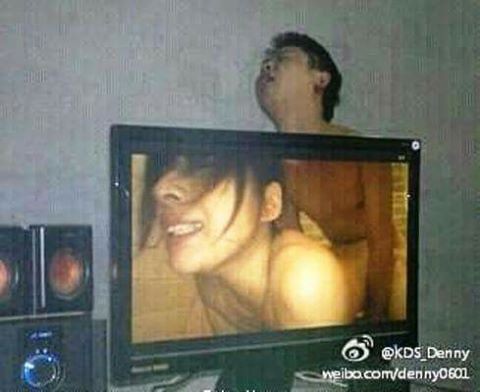 該網友在微博放上的照片中,很清楚的看見了他正在跟女友做愛,享受性福的情人節,但女友卻不是出現在床上,而是出現在液晶電視裡,網友利用電視放映A片,然後「喬」好角度,讓自己的身體剛好和男優下半身重合在一起,配合自己與女優的表情,看起來就好像自己也在「啪啪」的感覺。