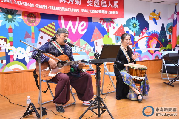 陳秀菊在開幕儀式裡當場揮毫創作以太魯閣原住民狩獵生活的畫作,現場並邀請「什麼樂團對ㄚ」樂團演唱原民曲風的歌曲。一連三首《我們都是一家人》《高山青》《阿美恰恰》將現場氣氛High到最高點,安可曲則由魏市長點選金曲歌手陳建年作曲作詞的《海洋》,透過曾獲邀美國關島為華人演唱的唯一原住民歌手王明道的渾厚嗓音所唱出,彷彿讓人有如徜徉在濤滔海聲的東海岸,也讓這場畫展更具特色。
