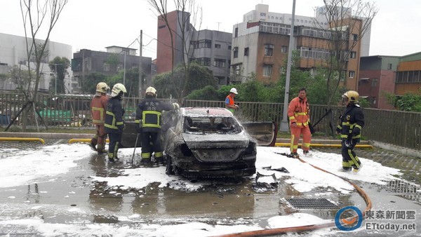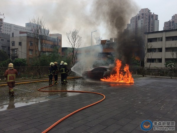 新北市淡水區淡江大學科學館平面停車場,7日近12時發生火燒車意外,一部紅色賓士三門跑車在停車格內,因不明原因突然起火燃燒。消防人員獲報到場,出動共7輛救援車輛馳援,火勢在12時10分就很快被撲滅,所幸現場並無人員傷亡,詳細起火原因則仍待調查。