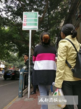 ▲站牌高,字又小,想看清楚真的很難。(圖/成都商報,下同。)
